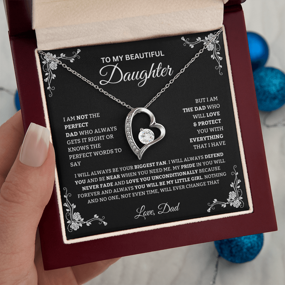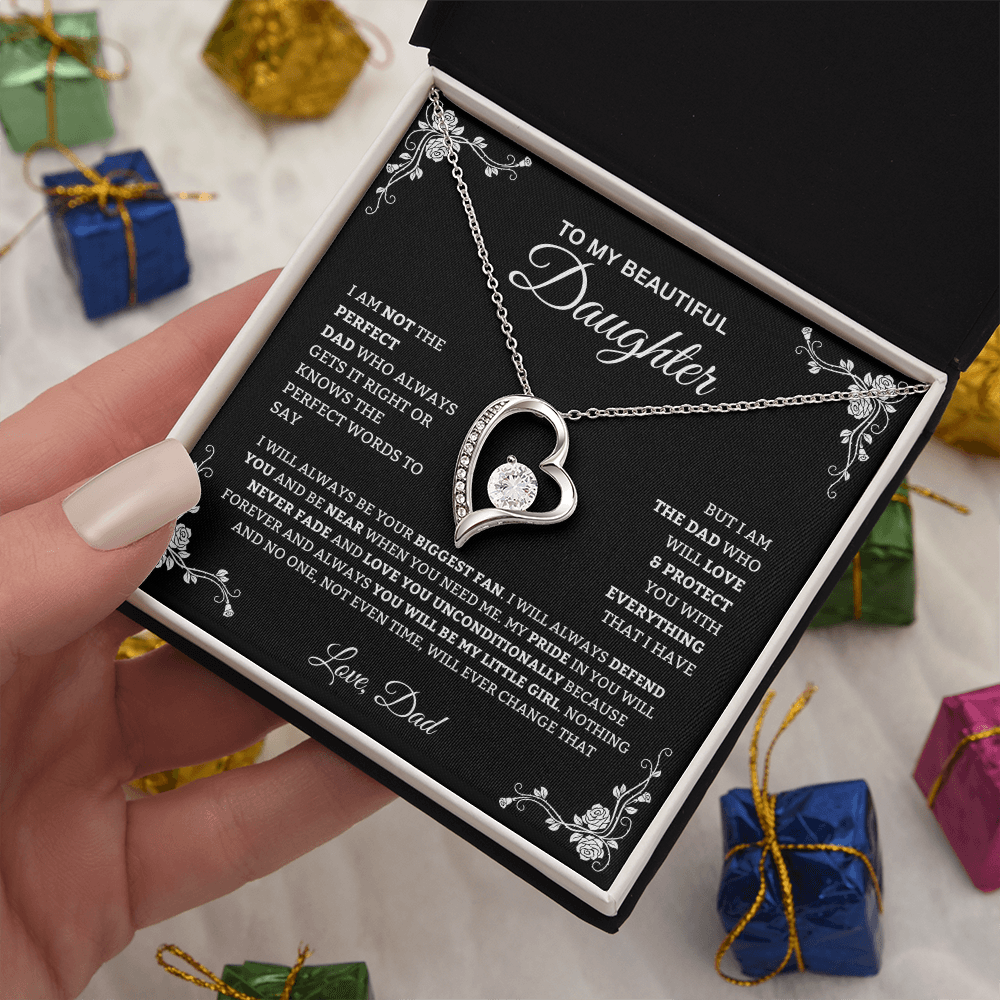 To My Daughter Christmas Necklace from DAD, Heart Pendant Gift Set, Sentimental Father Daughter Gift, Dad to Daughter Jewelry, Message Card